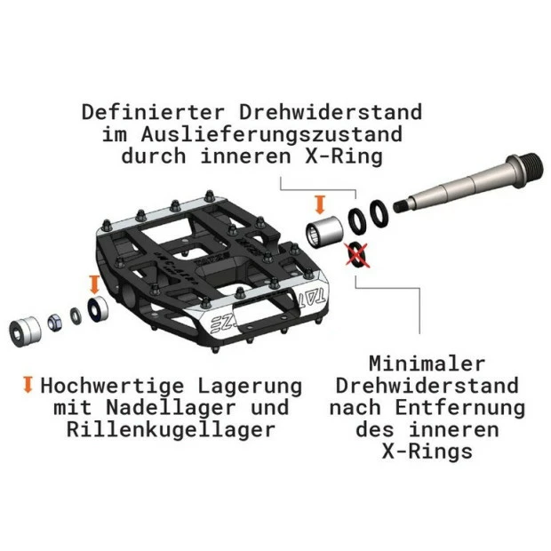 Si vous retirez le pied de la pédale, celle-ci ne tournera pas, vous évitant le désagrément d’une pédale verticale. Si vous voulez le maximum d’efficacité d’une pédale très légèrement rotative, il vous suffit de retirer rapidement et facilement l’anneau de résistance intégré. Dotées d’un axe en titane, ces pédales sont à la fois résistantes et légères.