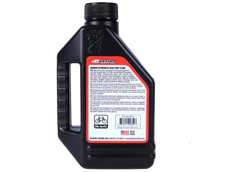 L’huile Maxima Serene est utilisée par Rock Shox pour l’assemblage et l’entretien de ses tiges de selles télescopiques Reverb. Son haut taux de viscosité diminue considérablement les frictions et assure un fonctionnement optimal tant au niveau de l’enfoncement qu’au niveau de la remontée de la tige de selle. Les additifs présents dans cette huile protègent les joints internes et protège contre la corrosion .